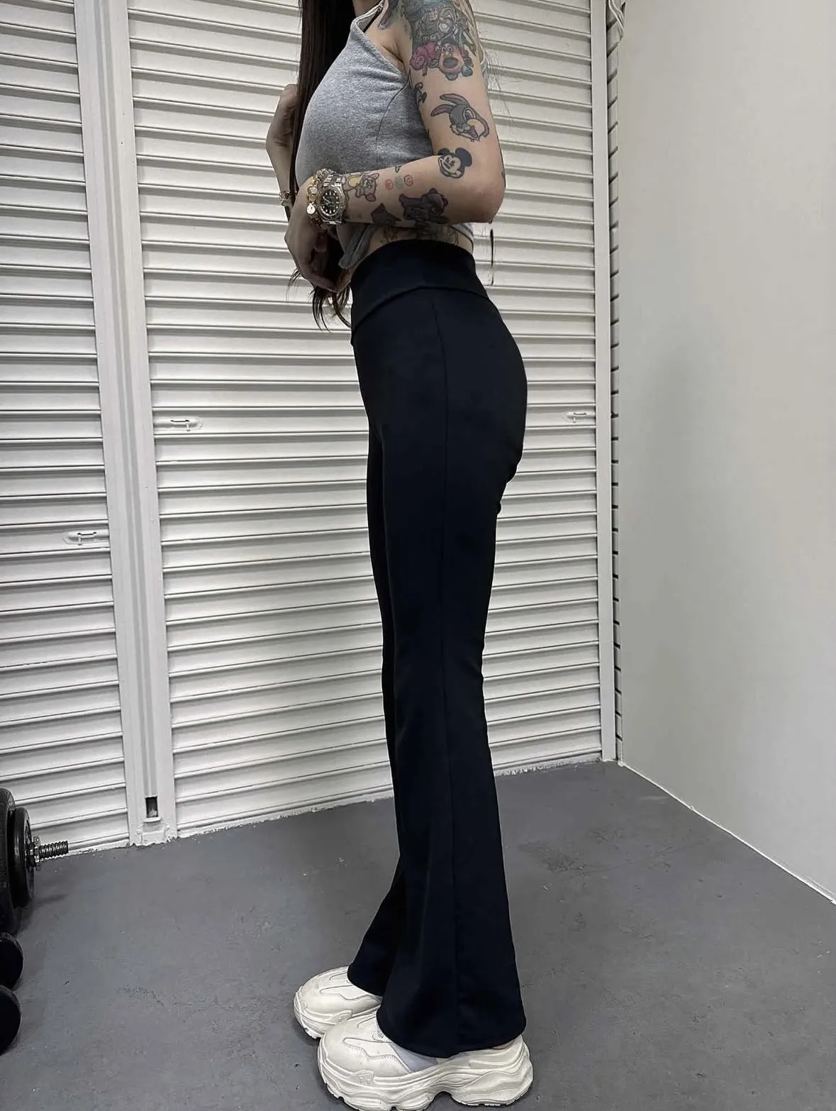 這是一條很不一般的彈力喇叭瑜伽褲,加寬設計收腹拉長腿型,喇叭線條更顯瘦設計,