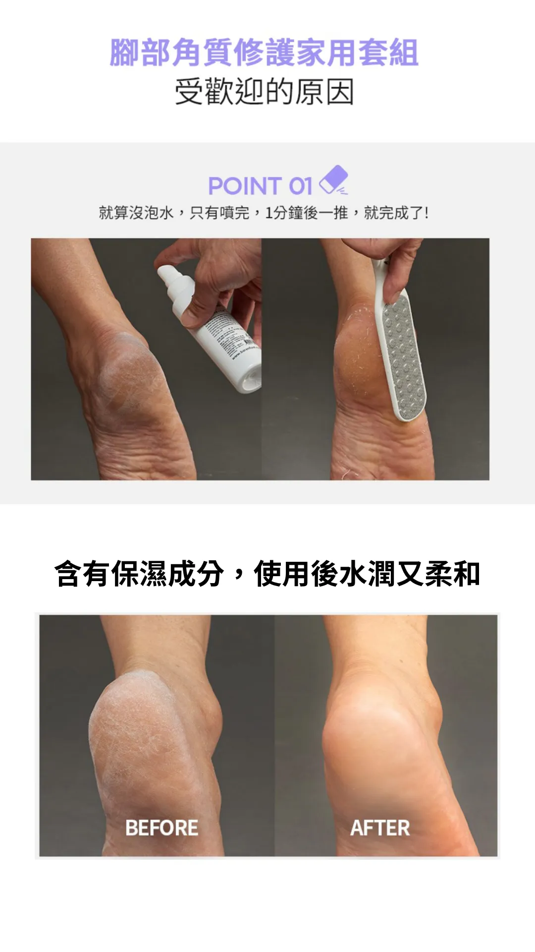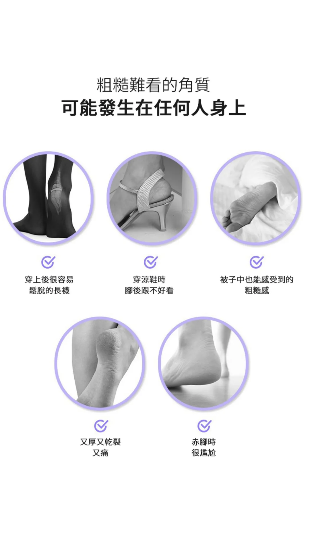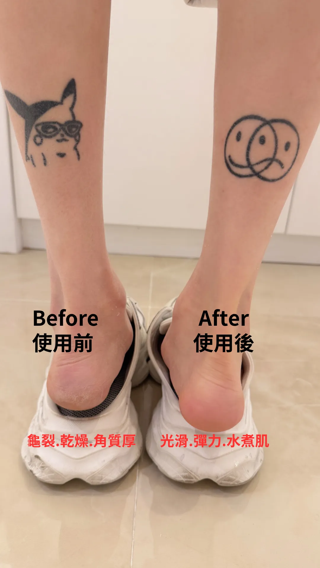 「腳後跟粗粗厚厚的…這瓶真的是救星💥無須搓揉、不用磨腳皮,輕鬆塗一層,老廢角質自己掉~一週用一次,腳跟嫩嫩像寶寶!👶🏻✨」
