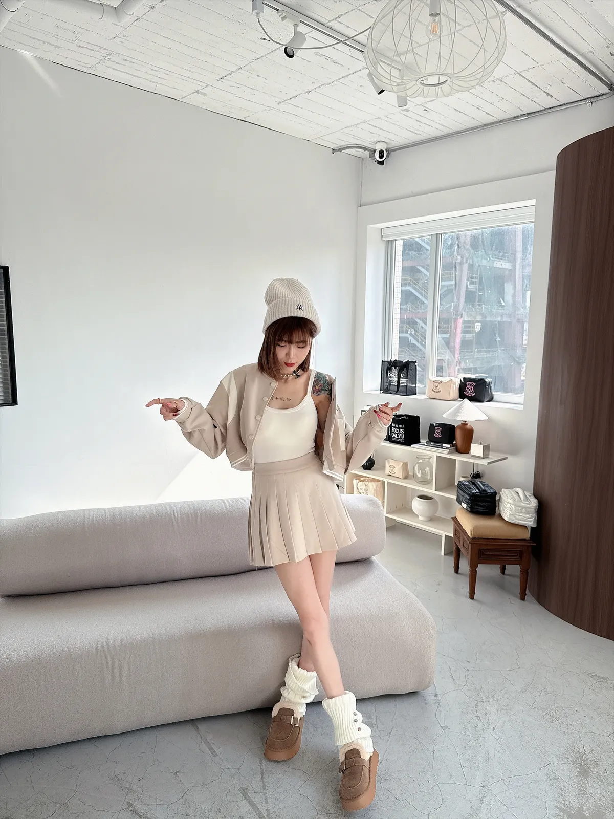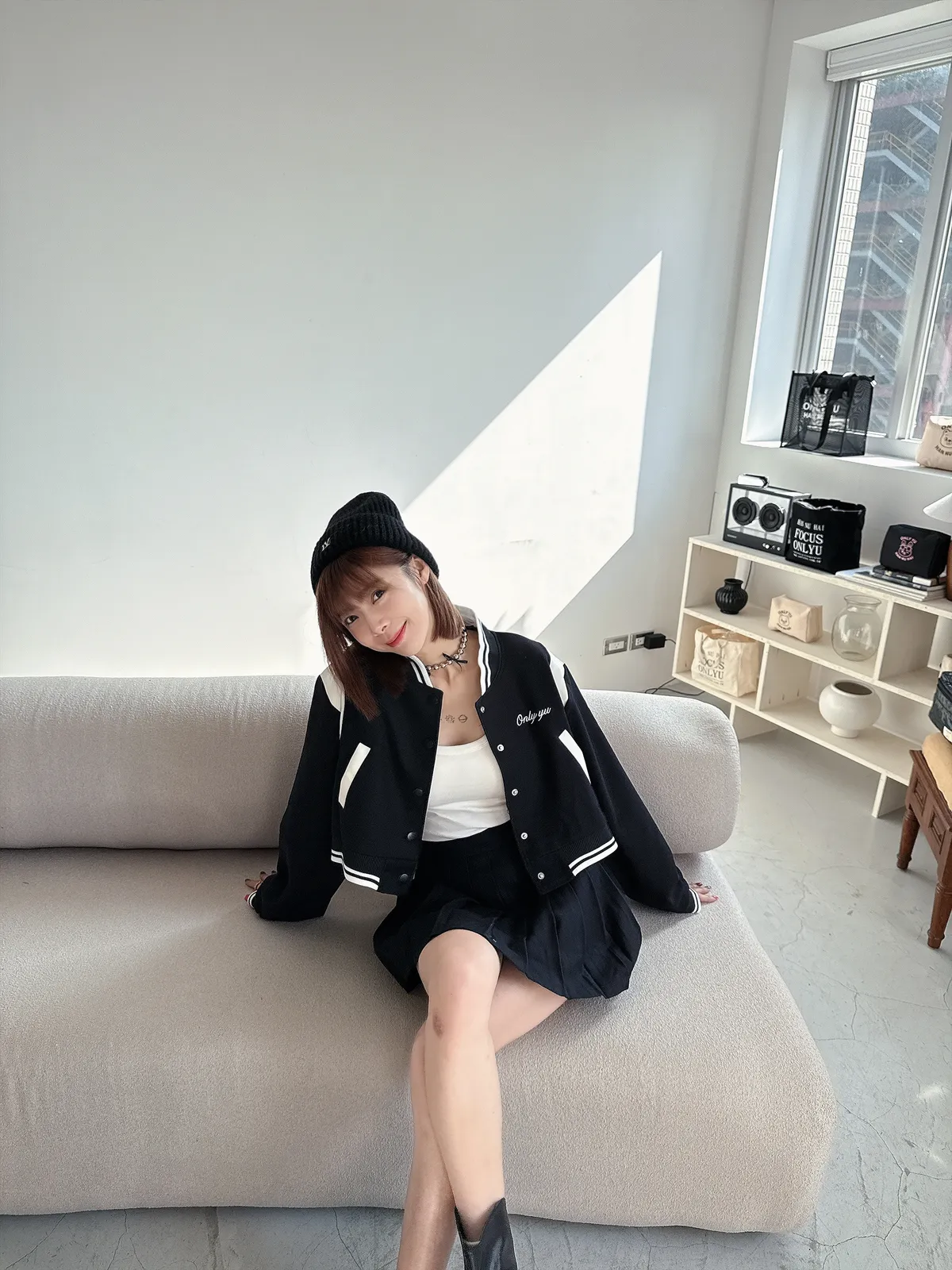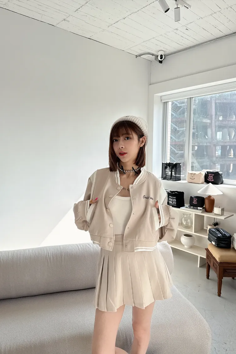 獨家自訂款♥︎電繡拼接棒球外套+百褶褲裙(套裝)