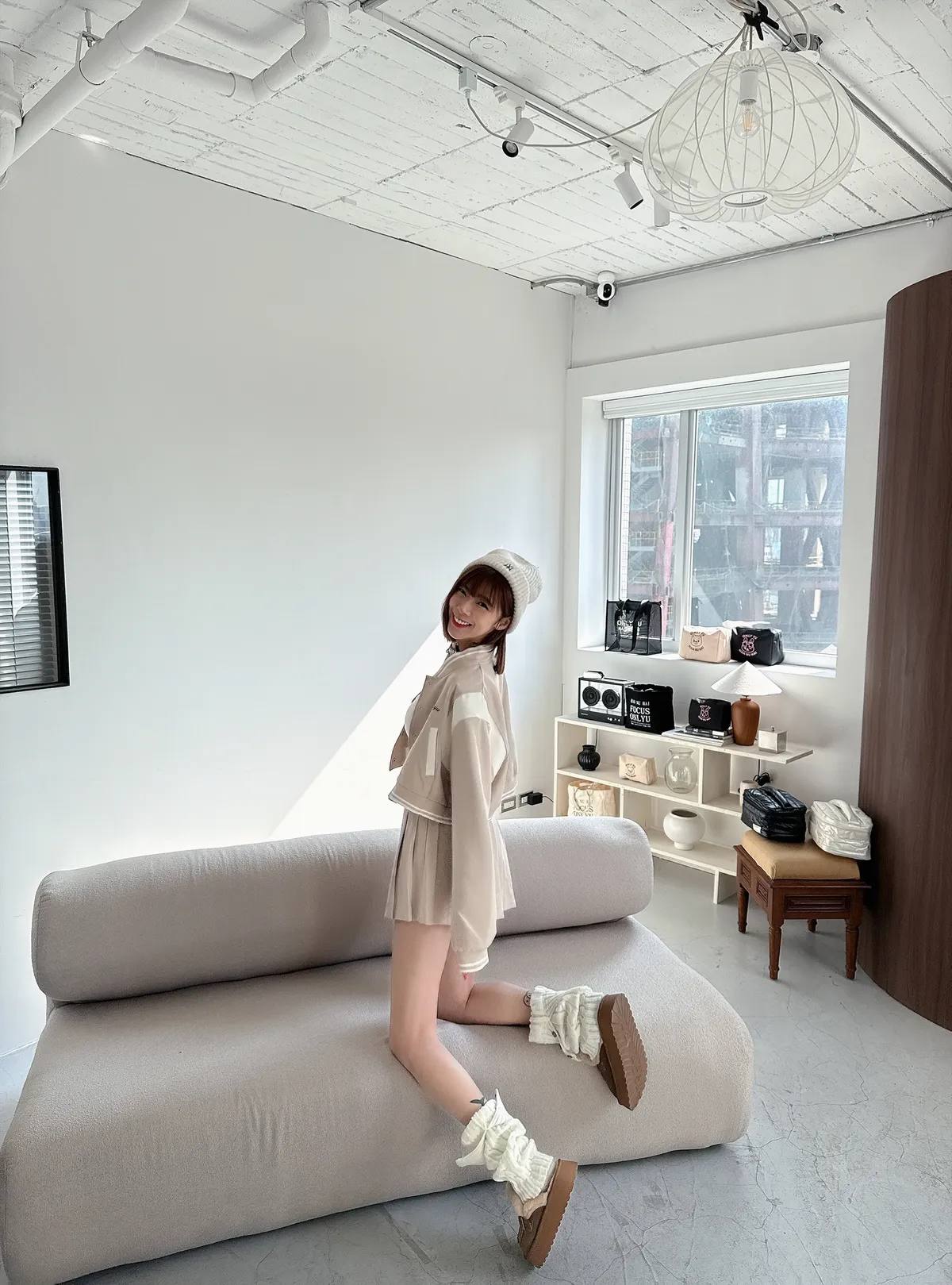 配上皮革拚接超級挺版,不會鬆軟沒精神。裙子是百褶布+安全褲,穿起來很安心也很舒服。」