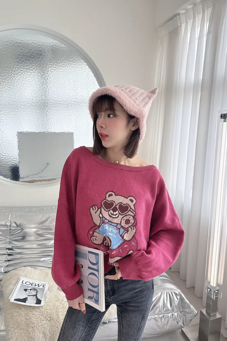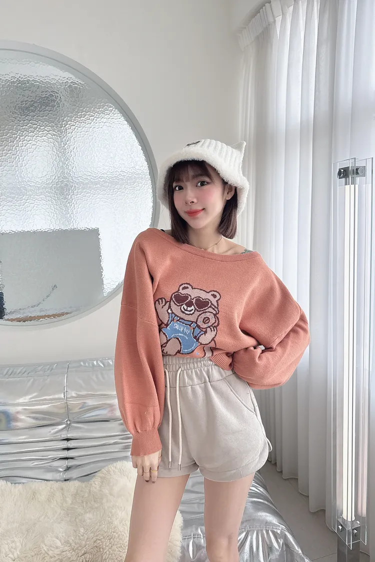 🍩🐻 針織中板泡袖甜甜圈熊毛衣