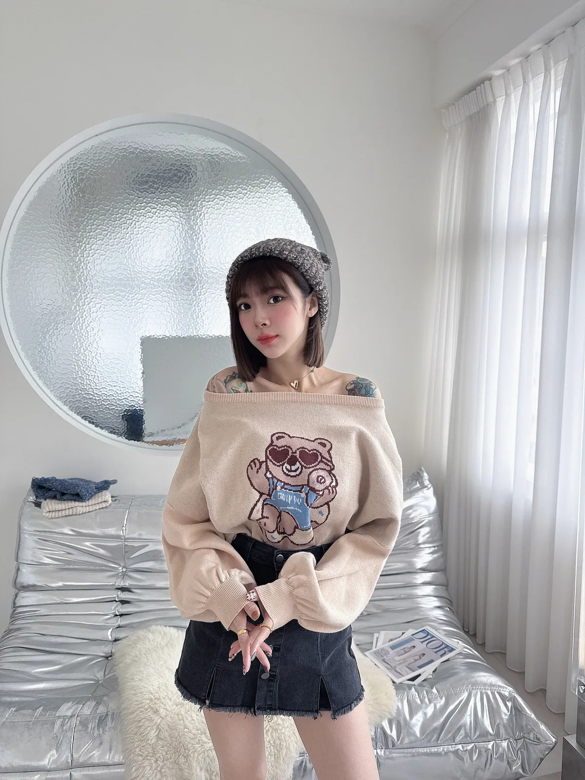 ✔ 落肩小露鎖骨,甜中帶點慵懶