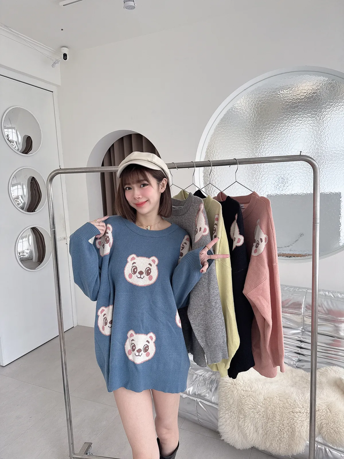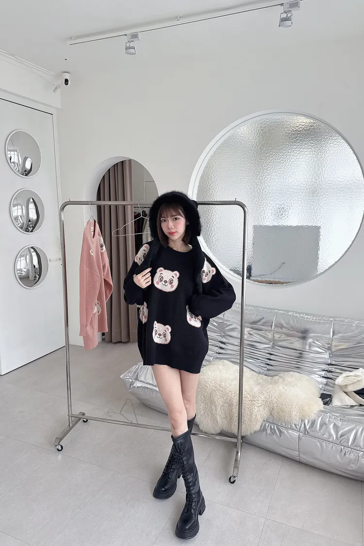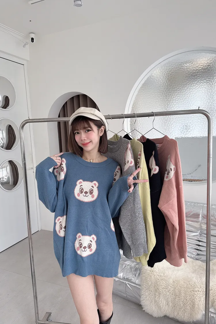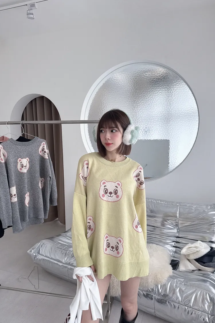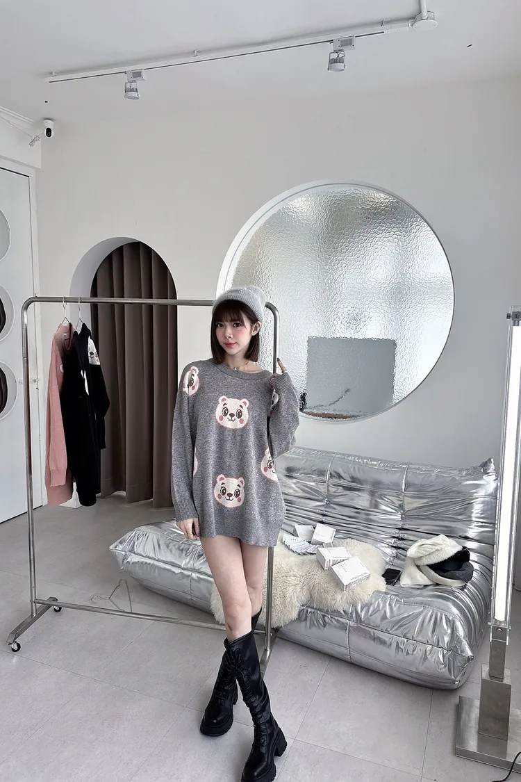 ✔ 滿版熊熊針織,甜而不幼稚