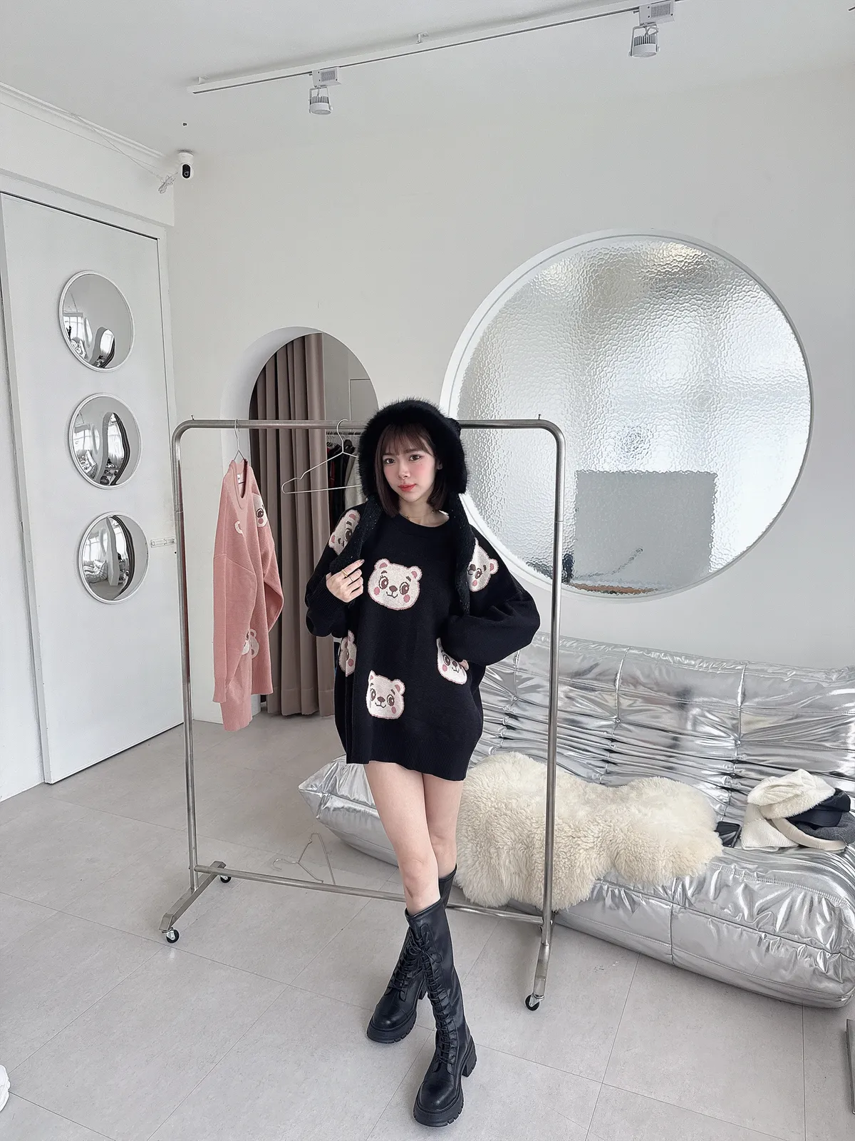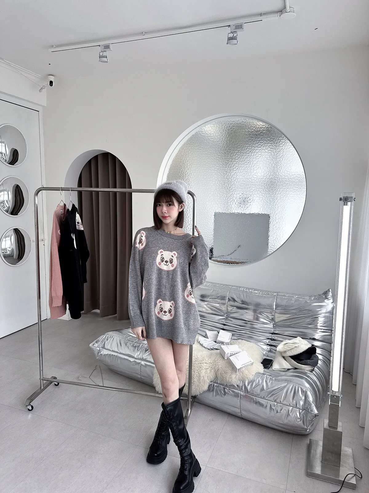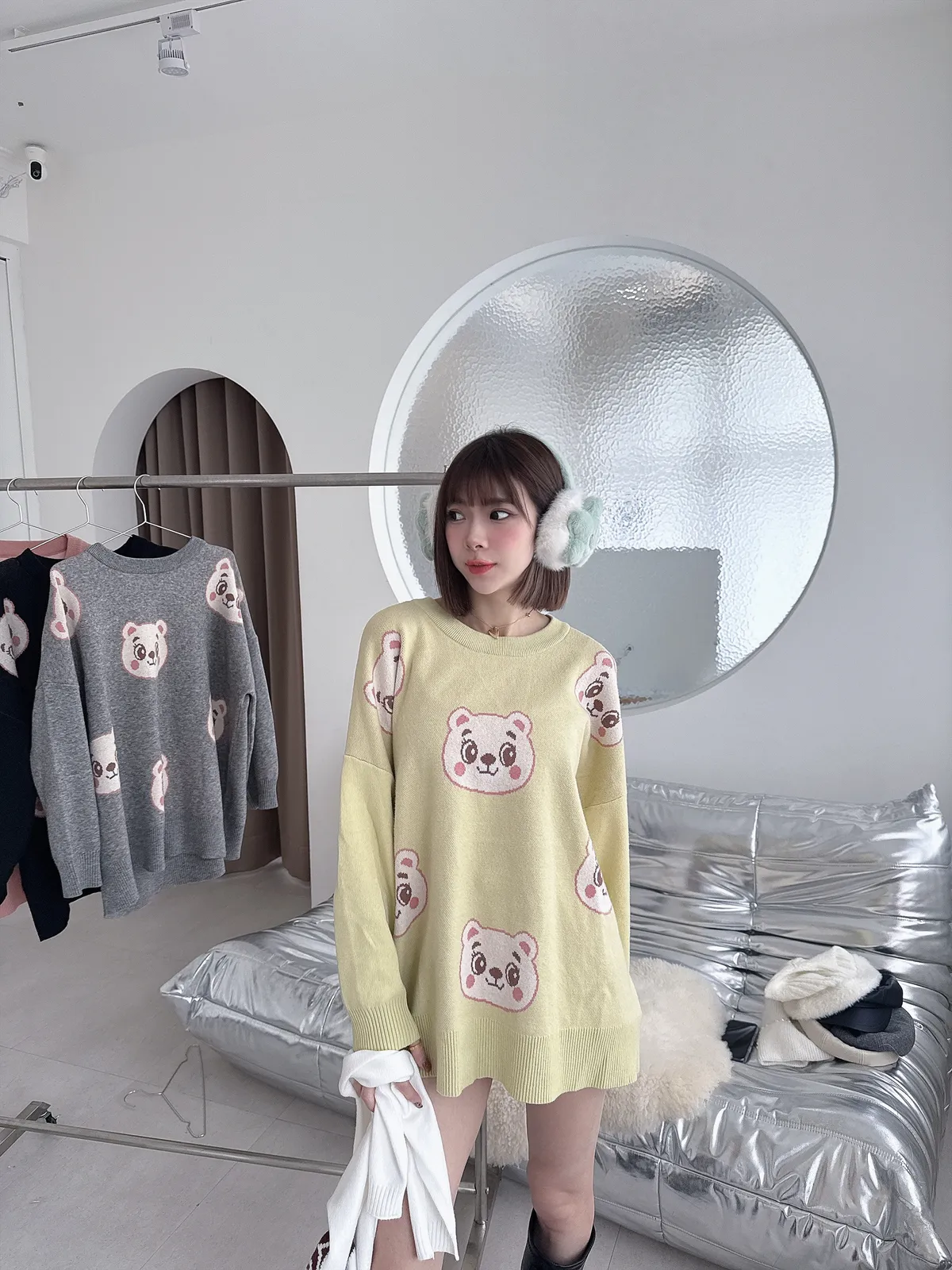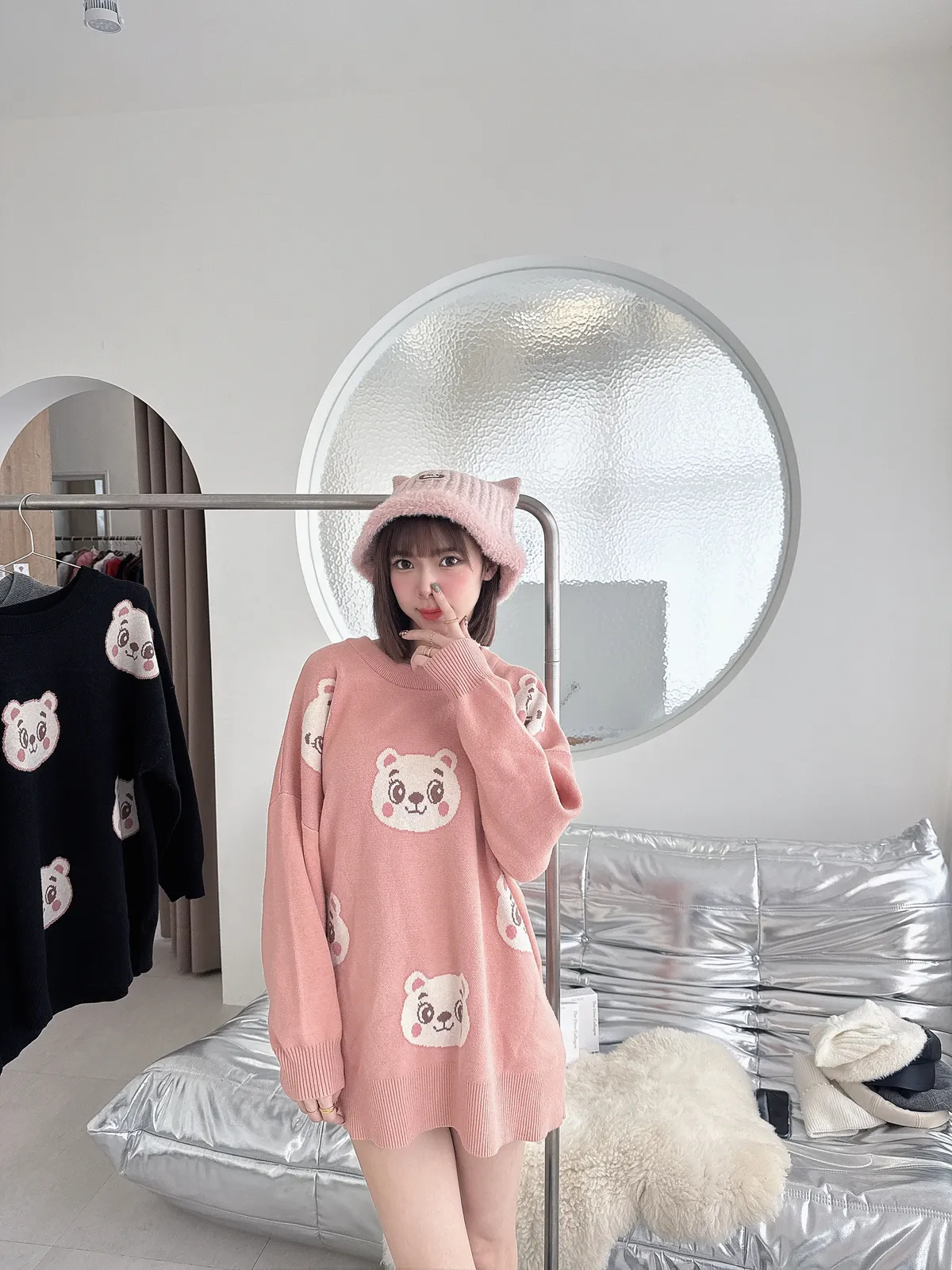 ✔ 滿版熊熊針織,甜而不幼稚