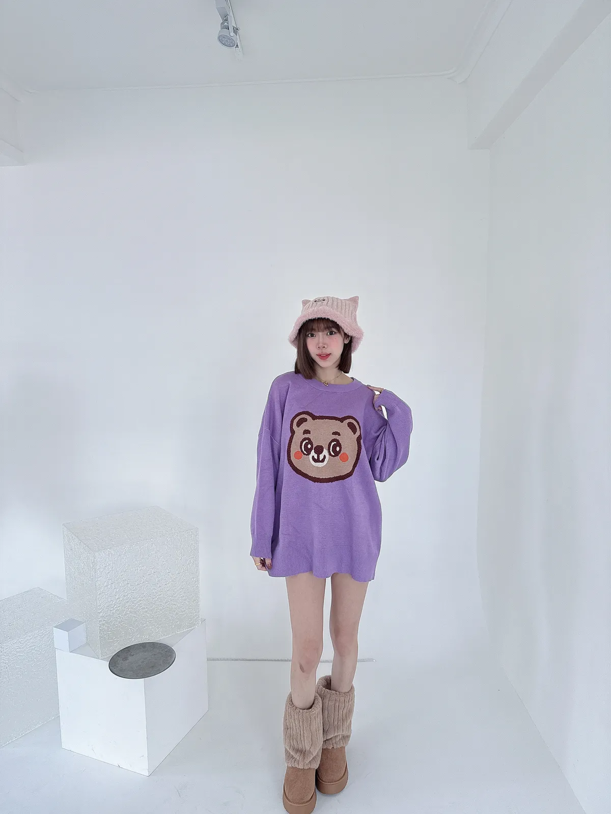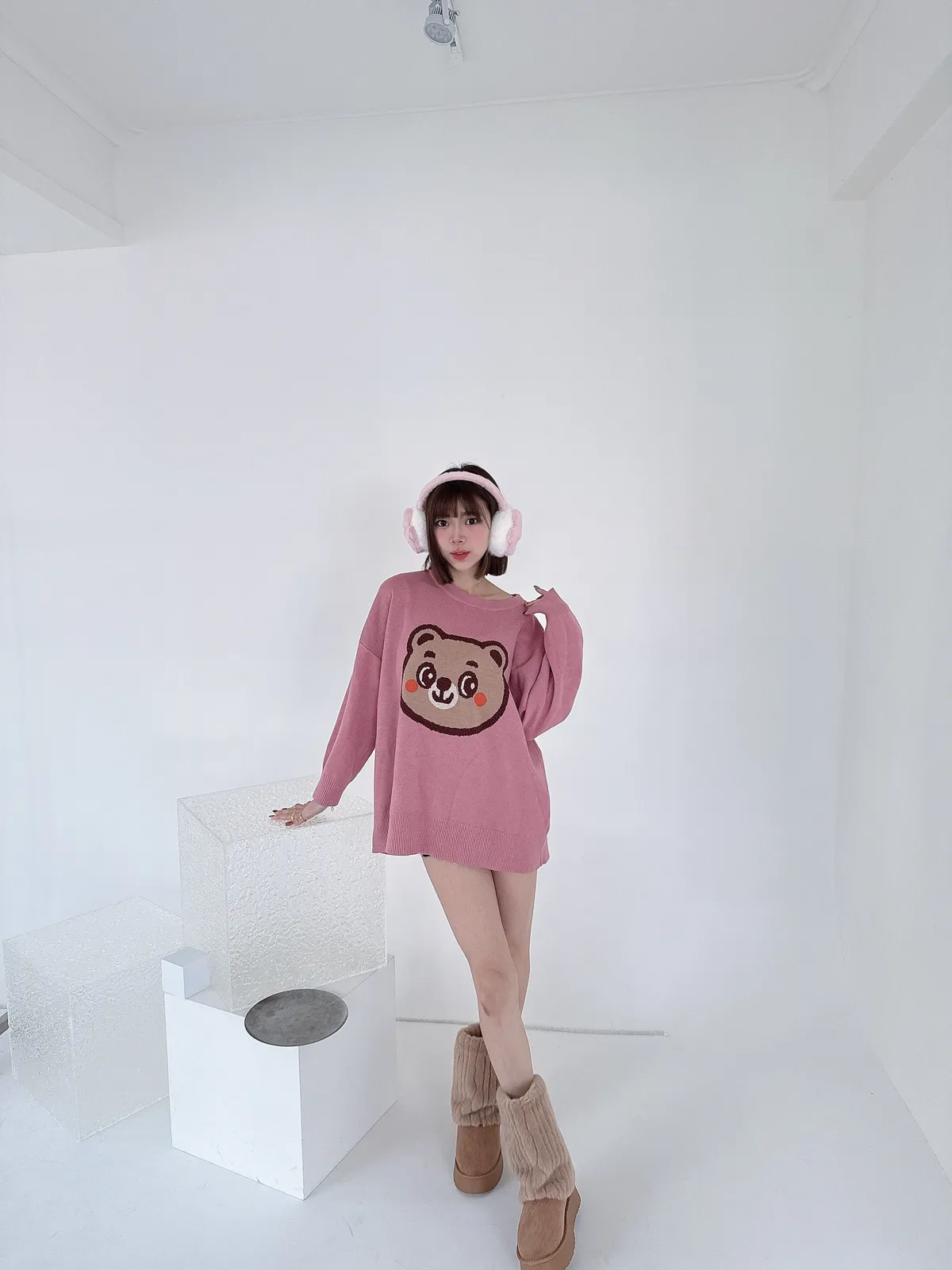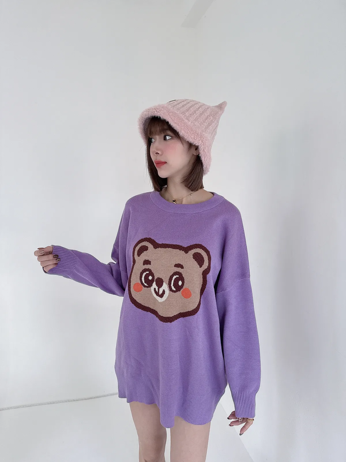 ✔ 大頭熊針織圖樣,立體可愛不幼稚