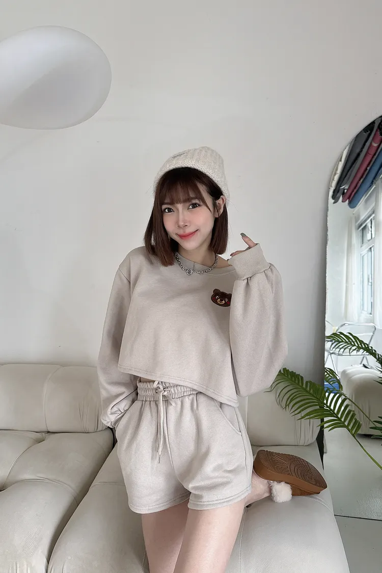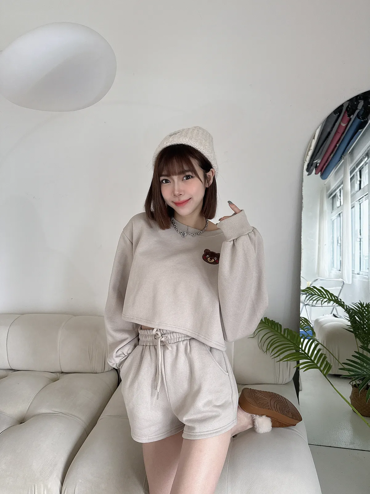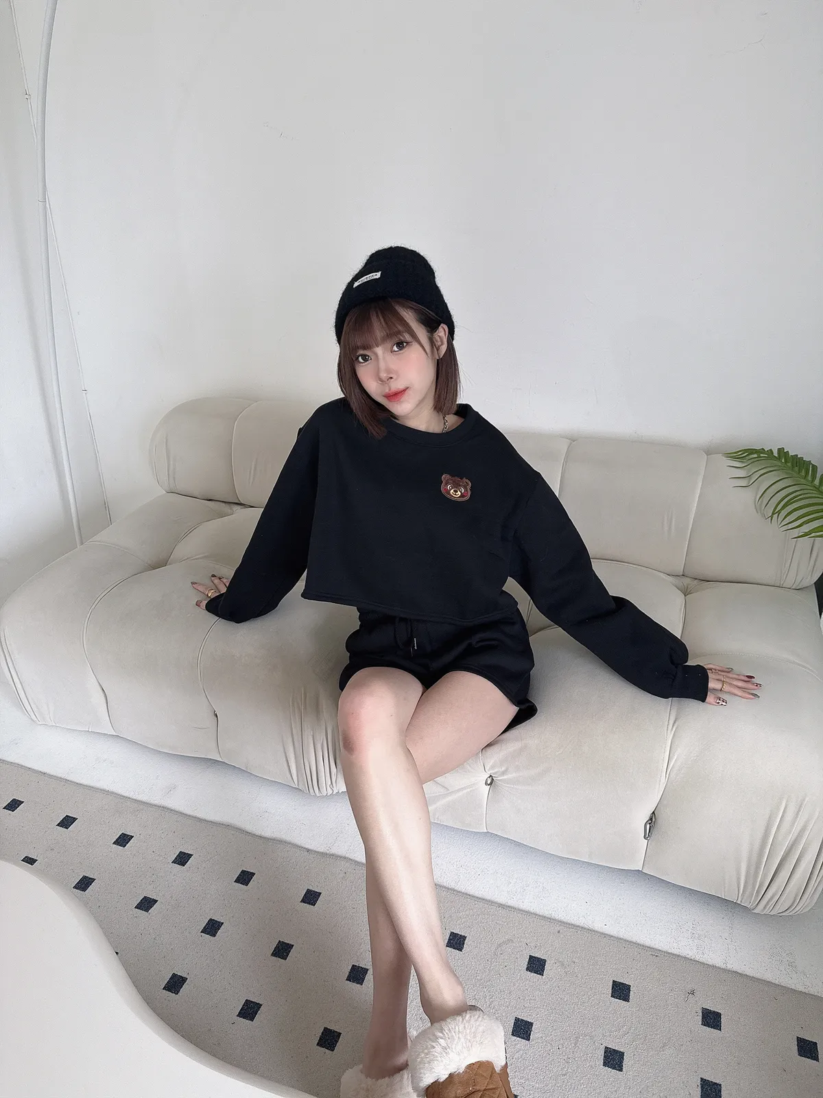 🧸 熊熊刷毛電繡中版上衣+彈性刷毛短褲