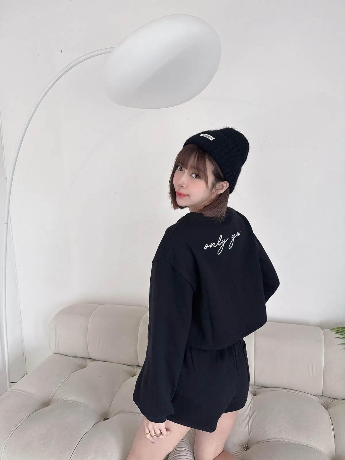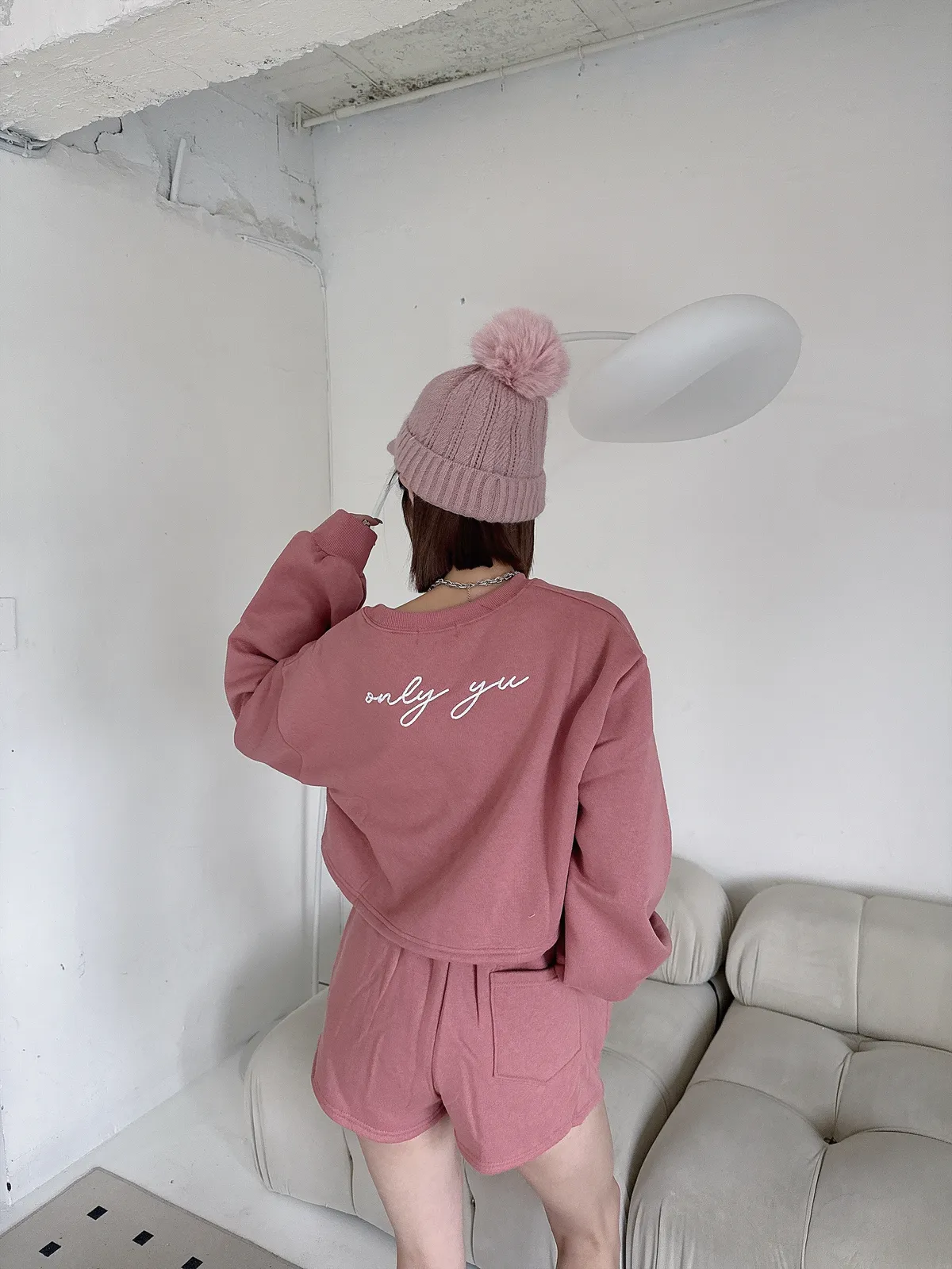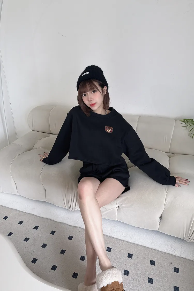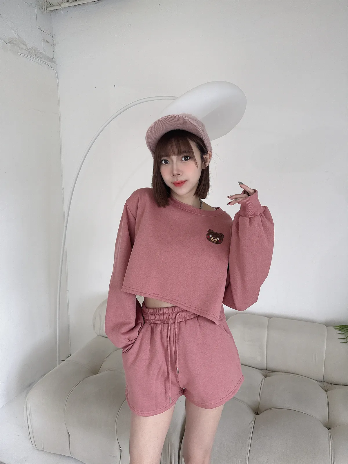 🧸 熊熊刷毛電繡中版上衣+彈性刷毛短褲