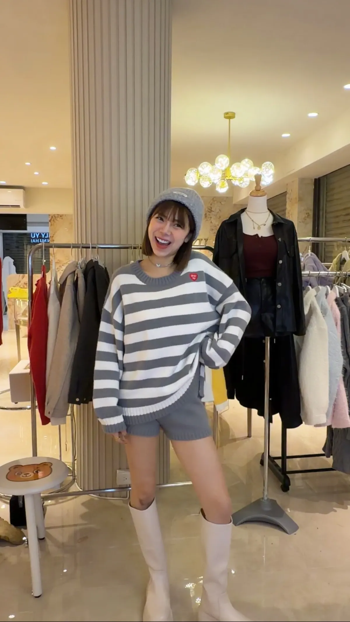 搭長靴是氣場感搭球鞋是日常感加毛帽又是另一種可愛。