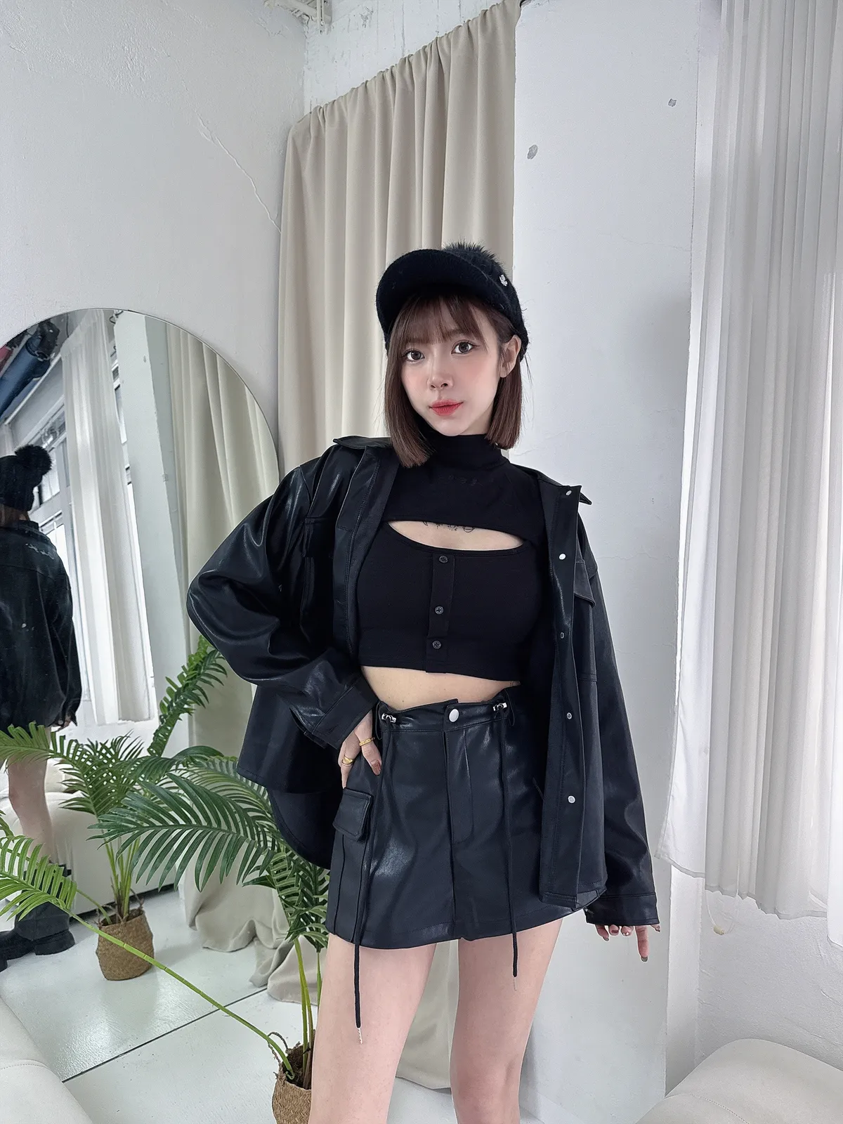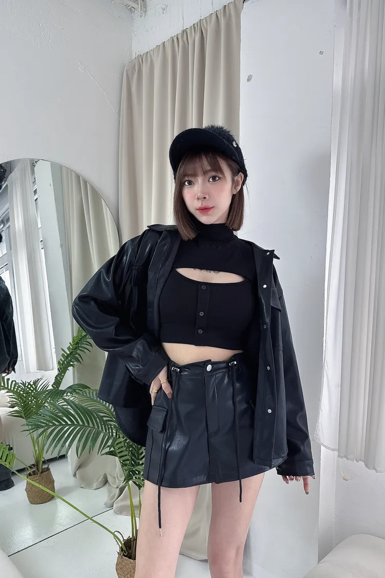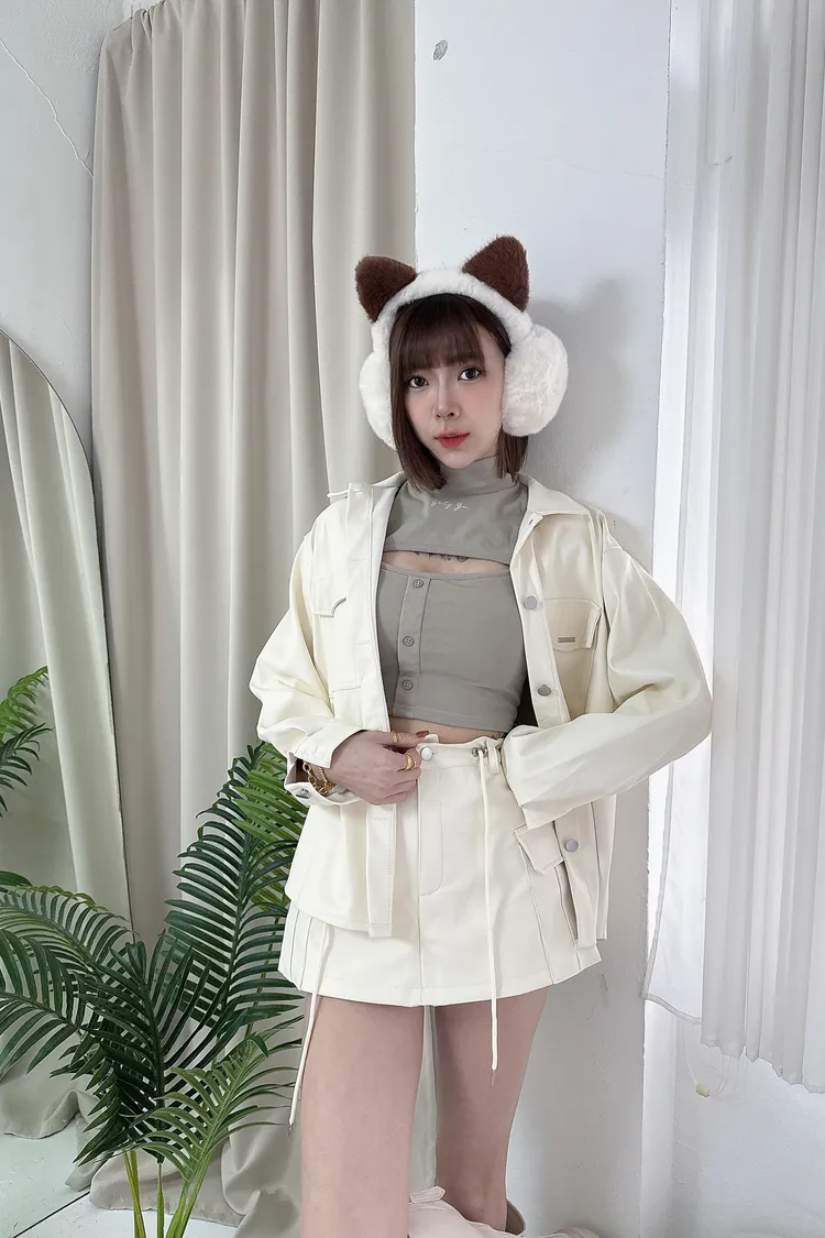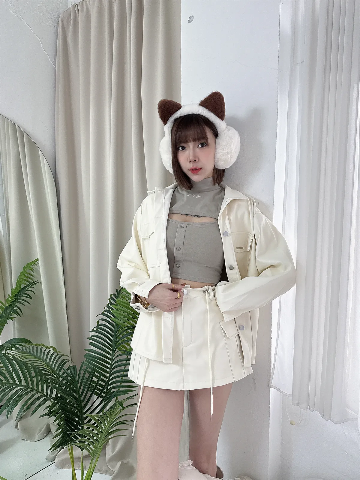 🤍 襯衫挺版電繡襯衫+彈性縮腰工裝褲裙