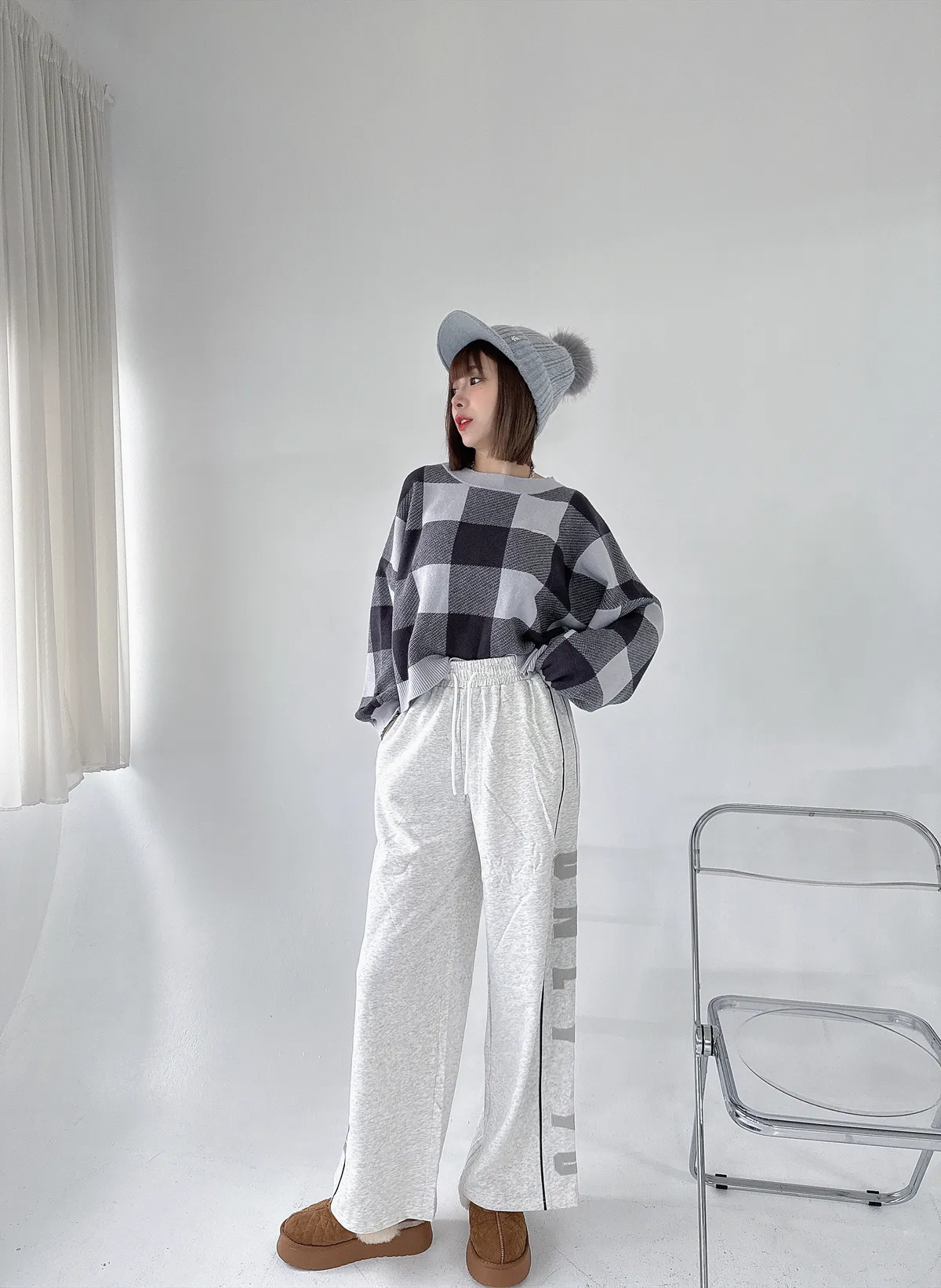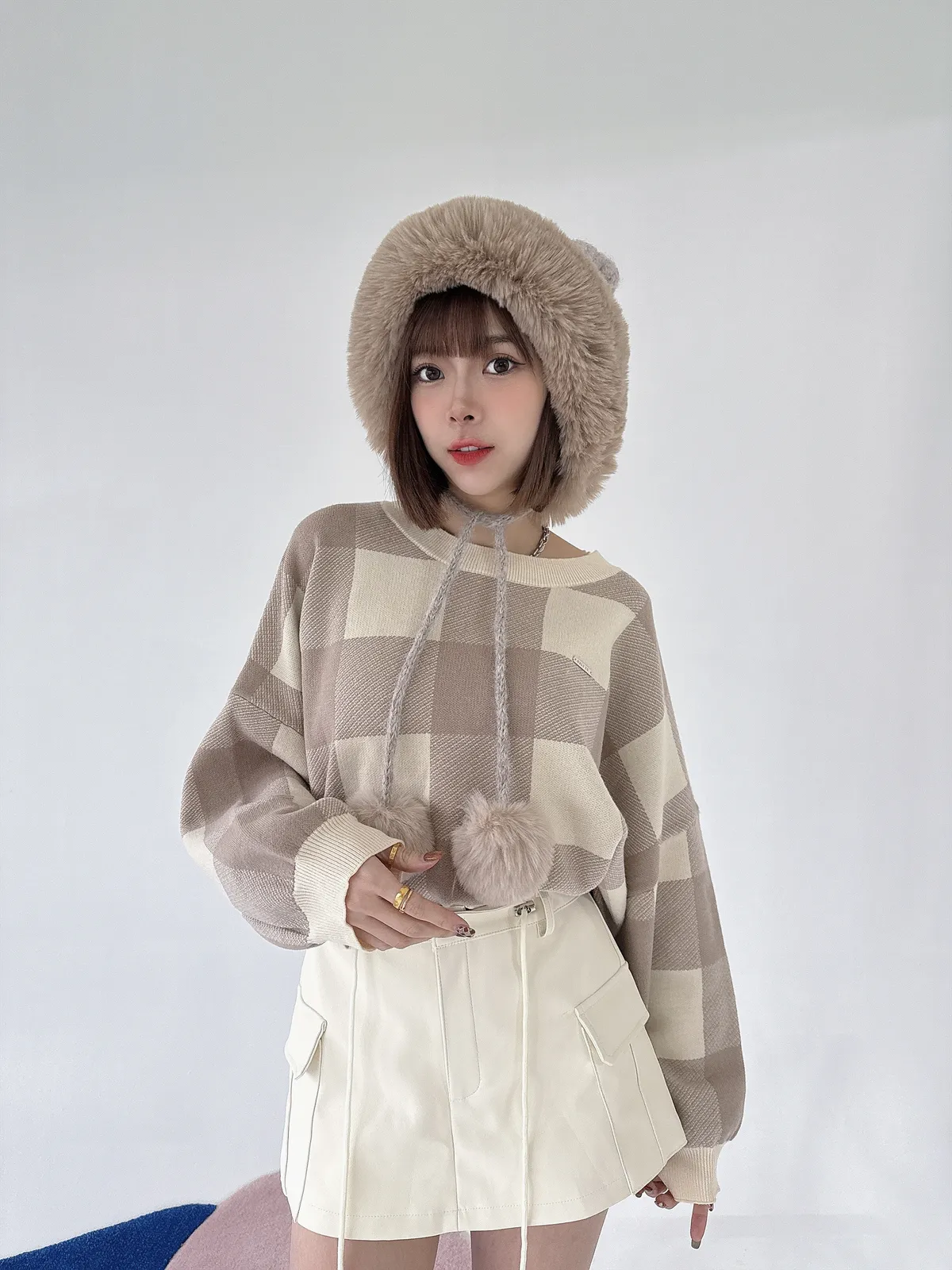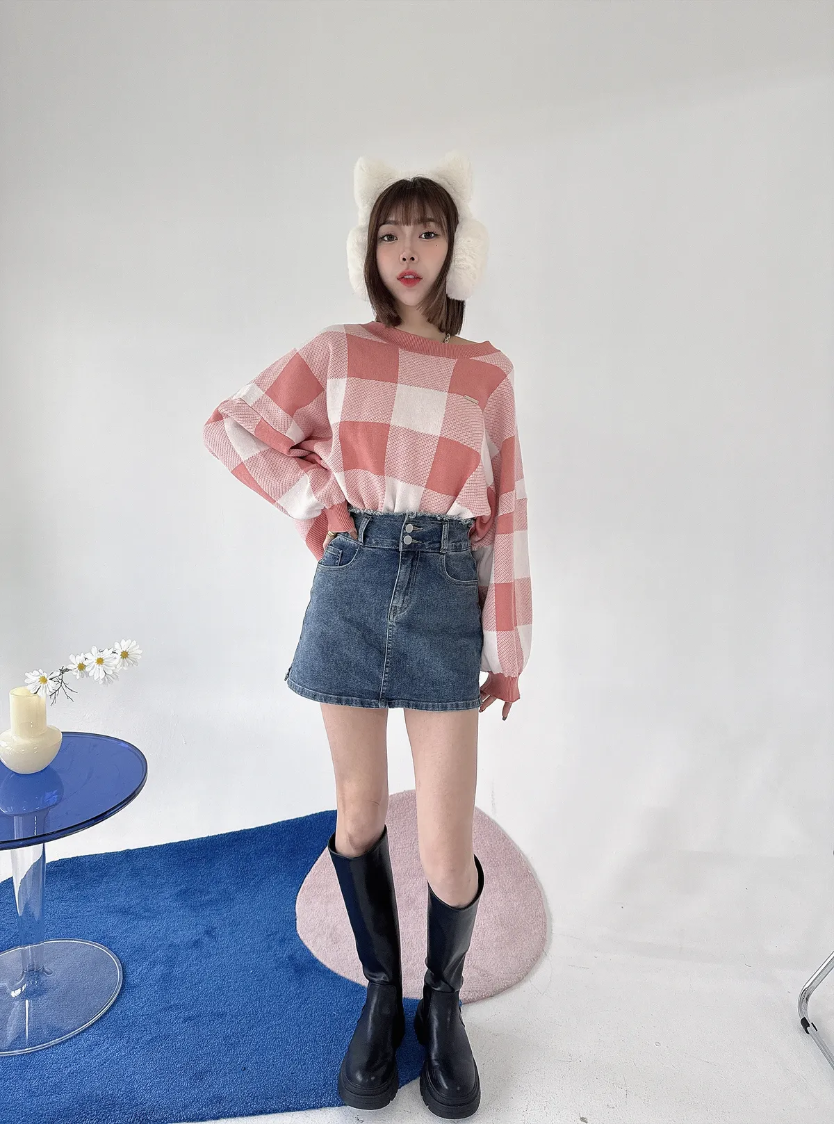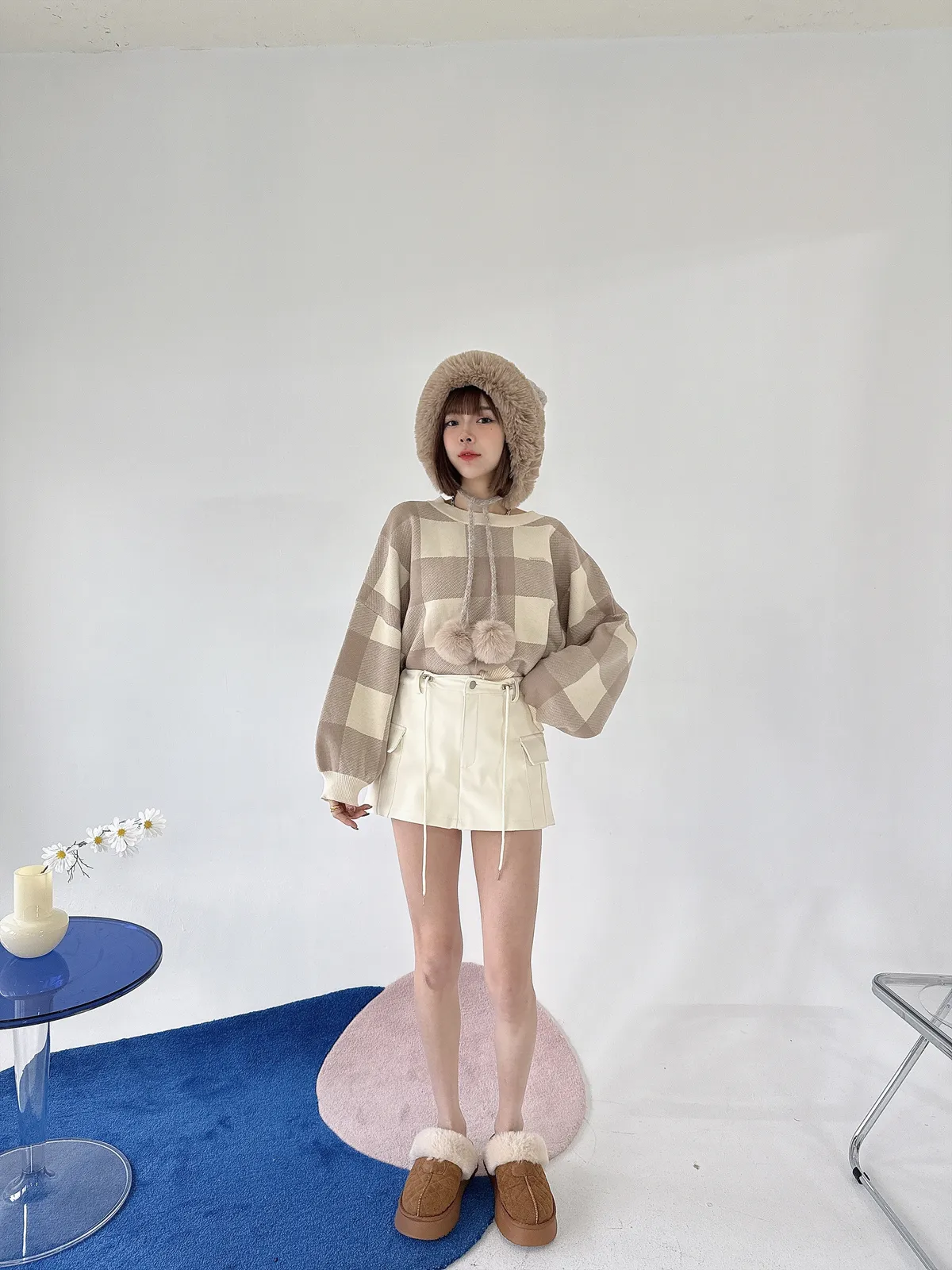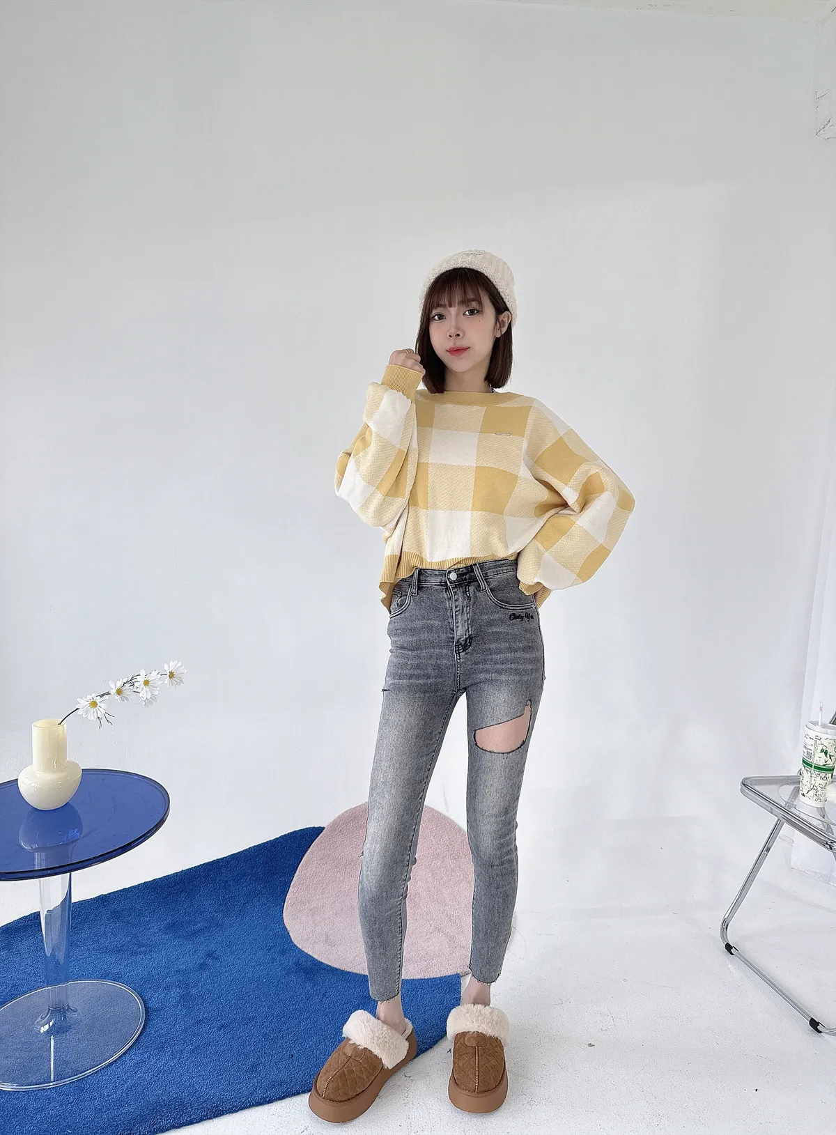 這件是 版型寬、但完全不顯胖 的那種格紋針織